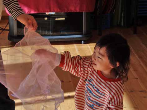 スカーフを使ってゆらゆら揺れたり楽器を鳴らしたり・・・