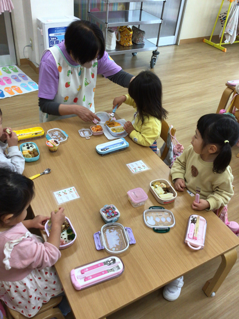今日はお家からお弁当をもってくる「愛情弁当DAY」でした。