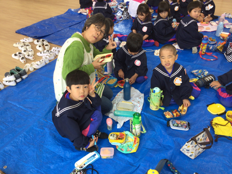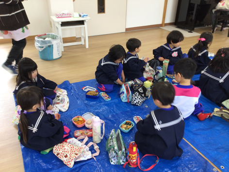 お散歩に出かけるクラス、ホールでお弁当を食べるクラスなどありました。