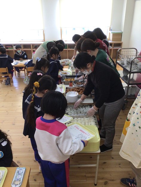 年長組が卒園が間近となり、お別れ遠足、お別れ会、給食バイキングと行事が続きました。思い出が増えましたね。